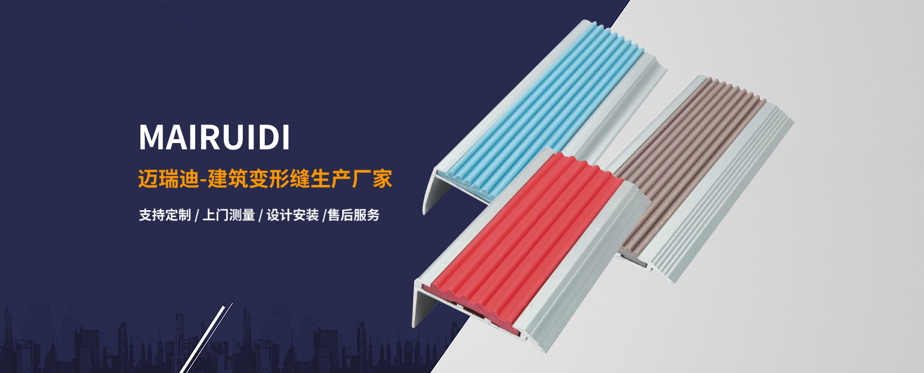 蘇州邁瑞迪工程材料有限公司座落于聞名全國的紅色旅游風(fēng)景區(qū)—沙家浜。公司從事建筑變形縫、鋁合金樓梯防滑條、鋁合金防塵地墊(毯)的生產(chǎn)、科研。年產(chǎn)各類變形縫12萬延米,鋁合金除塵地墊(毯)3萬平米,鋁合金踢腳線6萬米,鋁合金樓梯防滑條(止滑條)18萬米。